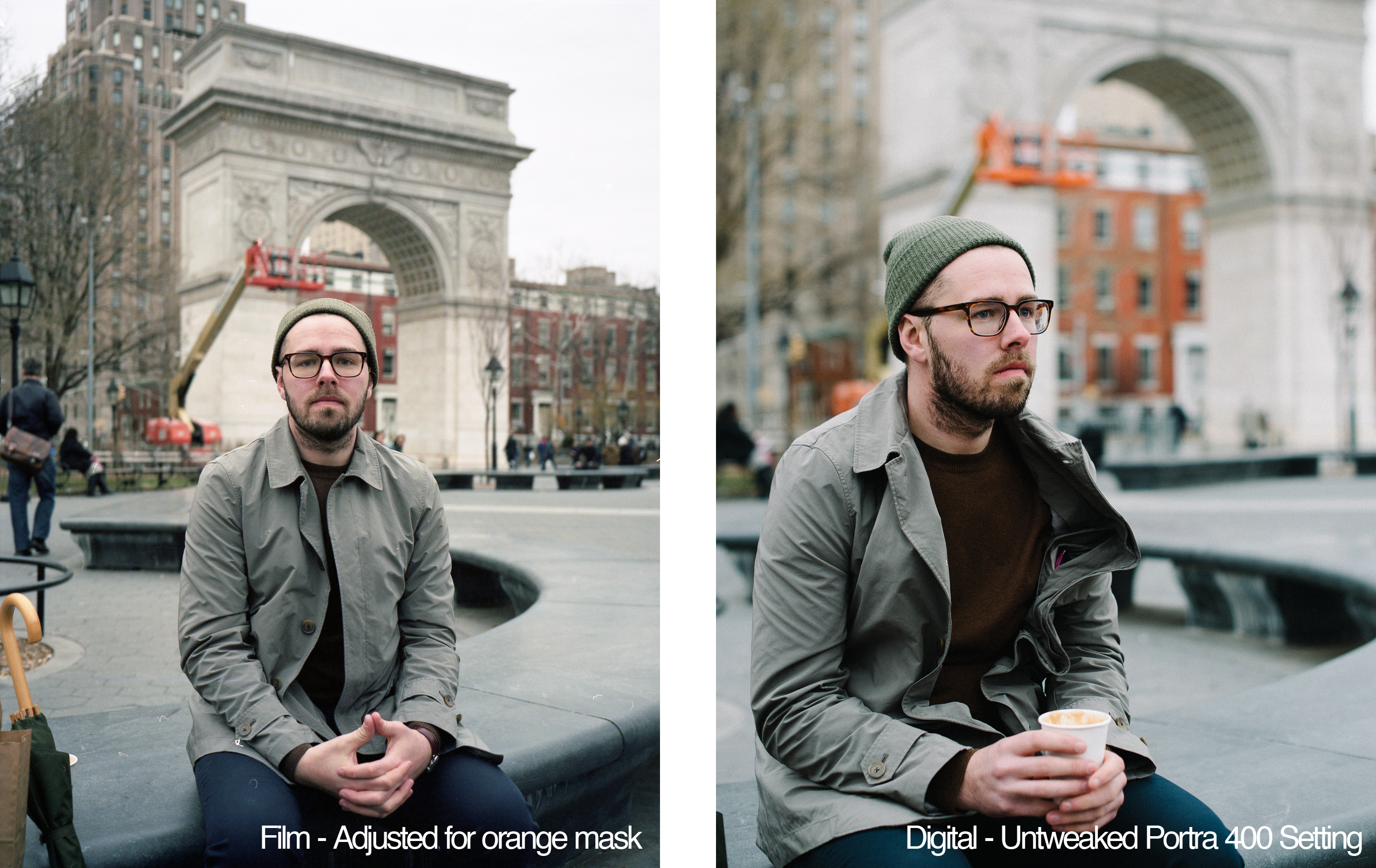 I’ve been a user of VSCO film for Lightroom for several years now. I’ve been happy with the results, but I wanted to see how close VSCO’s settings are to actual film. This whole experiment was a learning experience for me, especially regarding the digitization of a film negative. For this casual experiment I shot some Portra 400 film on my medium format Fuji GA645, snapped a few similar frames on my Nikon Df, and did a side by side with the VSCO Portra 400 setting from Pack 01 straight out of Lightroom.