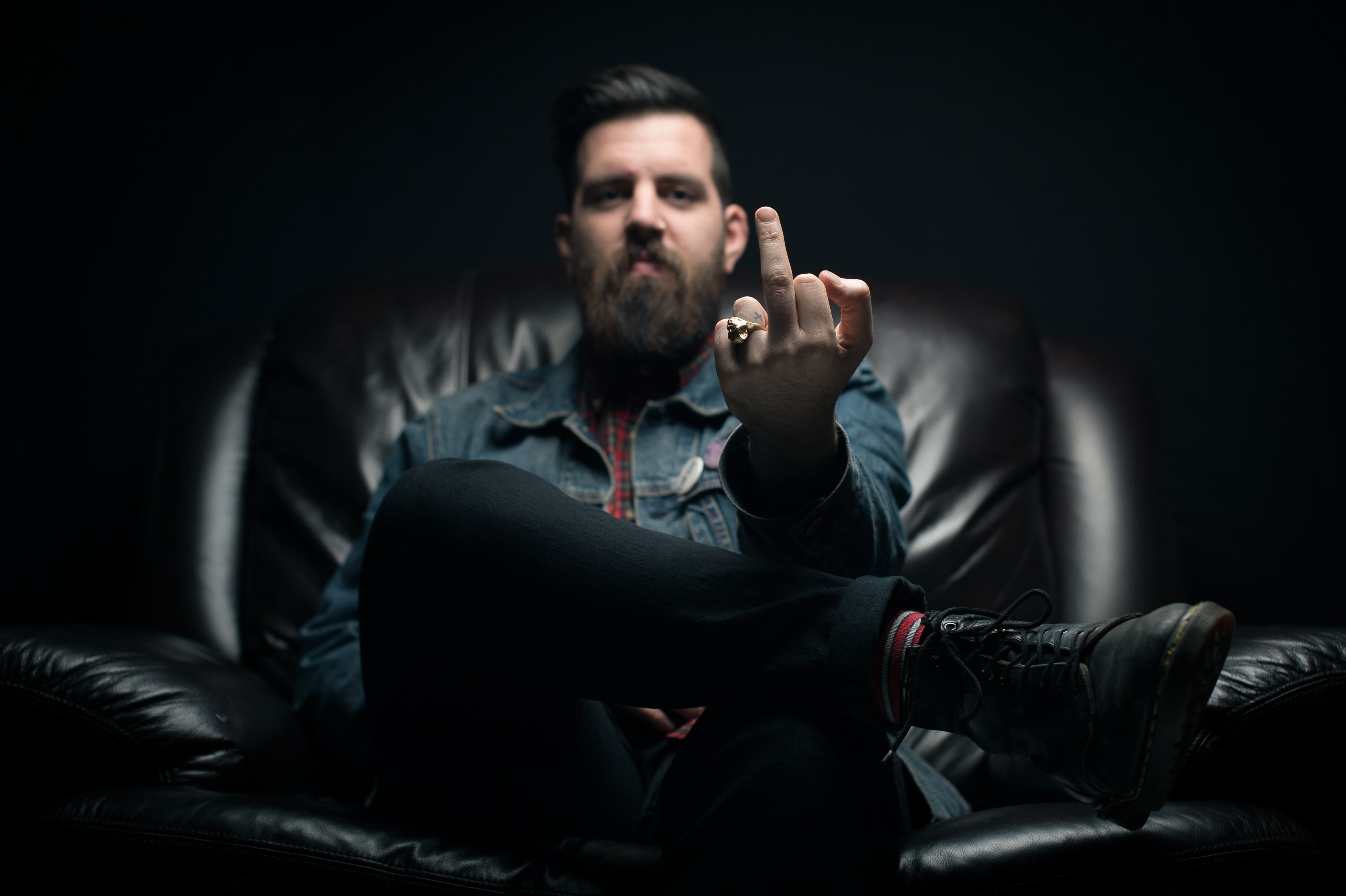 9/10 pictures of Mike have him giving the finger in it. this was a no-brained. I really like how the top lighting highlights his hand and the slightly shallow depth of field draws your eye towards it.